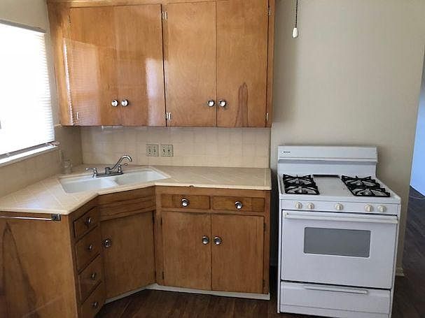 Rear house of two on a lot. Separate entrance off alley. Kitchen includes Stove and Refrigerator. Laundry Hook-ups Inside. New Flooring through out. New paint. Small Private Yard with Covered Patio. Single Car Garage. Water and Trash Included. This is a no Pet Unit. Renters Insurance Required.
