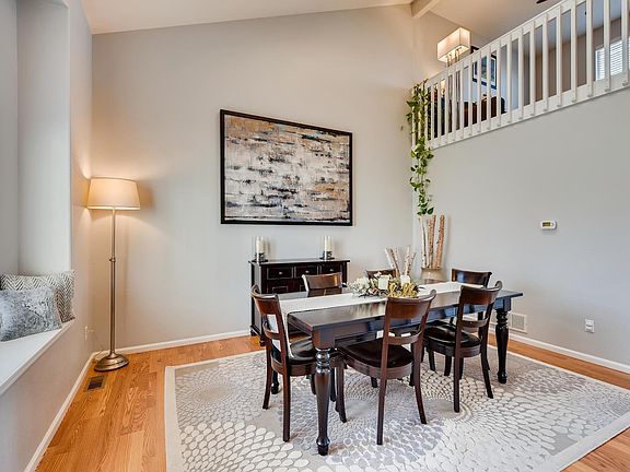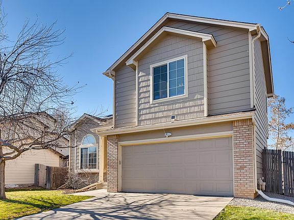 This 3 bedroom plus a loft is ready to move right in. Step inside to the vaulted living/dining room with laminate flooring that extends through the main level. Beautiful kitchen boasts white craftsman style cabinets adorned with slab granite countertops. Stainless appliances include the induction top range, microwave, dishwasher and refrigerator. Convenient eating space offers access to the elevated deck that looks over the large flat yard with plenty of space for outdoor activities. Family room has a gas fireplace and adjacent half bath updated with granite. Brand new carpet upstairs! Master hosts a private full bath with dual sinks, while the secondary bedrooms utilize the full hall bath. Loft has a closet and is currently used as a study. Full unfinished garden level basement, central air, newer exterior paint, newly installed Solar system with balance paid by seller, blown in insulation and attic fan, located in the Cherry Creek School district with a view of Spring Creek park.