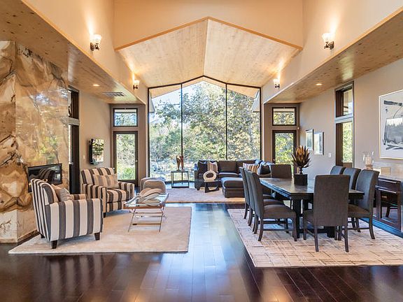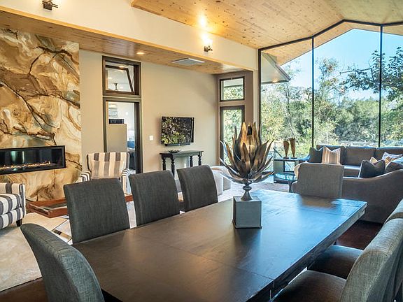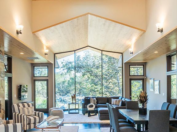 Set in Three Rivers, the ''Gateway to the Sequoias'', this gorgeous property perches on the edge of the South Fork River with views up canyon to the Sierra Nevada foothills. Upon entering, the modern, clean lines and extensive use of structural glass ushers in the outdoors. Eyes are drawn to the massive floor-to-ceiling slab of Quartz that mimics the river bed. Overhead, the wood ceiling continues through the structural glass wall ending in the sky. Entertaining family and friends will be a delight with the spa and outdoor kitchen amenities. Snuggle up next to the fire pit on chilly evenings. Perfect for retirees, vacation get-aways or families, this home is uniquely stunning.