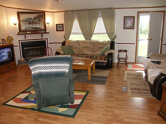Wonderful country setting with large stocked pond, fenced pasture, well maintained doublewide mobile home, well built decks, very nice large above ground pool, nicely landscaped backyard and storage building.