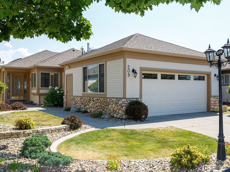 Welcome to this perfectly maintained 3200 plus sqft walk-out rancher within the adult oriented gated community of The Pointe. With beautiful views of Okanagan lake, this expansive 3-bedroom residence has many worthy features. Step inside to find an inviting main level layout with huge lake views. Easy living with your primary bedroom, and laundry on the main floor , with extra space for an office or media room. Open concept kitchen and living room that heads out to an extended deck with an electric awning that is amazing for those sunny days. Downstairs there are two extra bedrooms, a full bathroom, family room, a summer kitchen, walk out patio area , tons of storage, and a fabulous space for a craft/ sewing room, or workshop. Residents of this exclusive community enjoy access to an array of amenities, including an indoor pool, library, gym, recreation room, guest kitchen, and inviting common areas for gatherings. Lease is Paid. New Hi Eff Furnace and AC . New Dishwasher and major lake views.. this makes Living at The Pointe the perfect place to call home. Do not miss your chance to check it out ! Call your agent today !