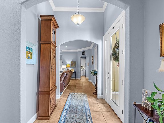 Welcome to this exceptional 3 Bedroom / 3 Bathroom home in the coveted Muirfield section of Craft Farms North! From the moment you step inside, you’re greeted by soaring 10-foot ceilings, elegant crown molding, and carefully crafted bullnose corners that add a touch of refinement to every room. The heart of the home is the newly remodeled kitchen, where sleek quartz countertops, a custom backsplash, and stainless steel appliances (all of which convey) combine style and function for effortless living. Natural light flows seamlessly throughout the open living spaces, creating a warm and inviting atmosphere. A screened-in back porch with a cozy gas fireplace serves as the perfect retreat for quiet mornings or entertaining guests, all while enjoying peaceful views of the surrounding greenery. Thoughtful upgrades and timeless details set this home apart. Situated in one of the Gulf Shores' most desirable communities, this is a place you’ll love calling home. DON'T MISS THIS OPPORTUNITY! Buyer to verify all information during due diligence.