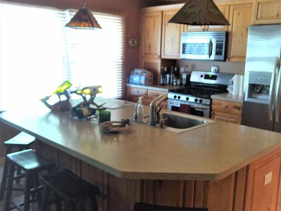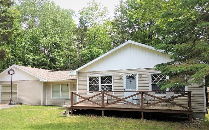 Move in and enjoy! 2 bedroom, 2 bath home that is completely redone and beautiful. Open floor plan with kitchen. Living room has vaulted knotty pine ceilings and a fireplace. Kitchen has a large island with seating. Gas stove stainless steel fridge, beautiful cupboards. Master suite with tiled shower and floor, second bath and kitchen also have tiled floors. Breezeway entrance is being used as a third bedroom. Could be a family room or office. 2 car attached garage. Very attractive home and tastefully decorated. Located in Lost Lake Woods Club, the best kept secret in the north! Call for a packet all about the club!