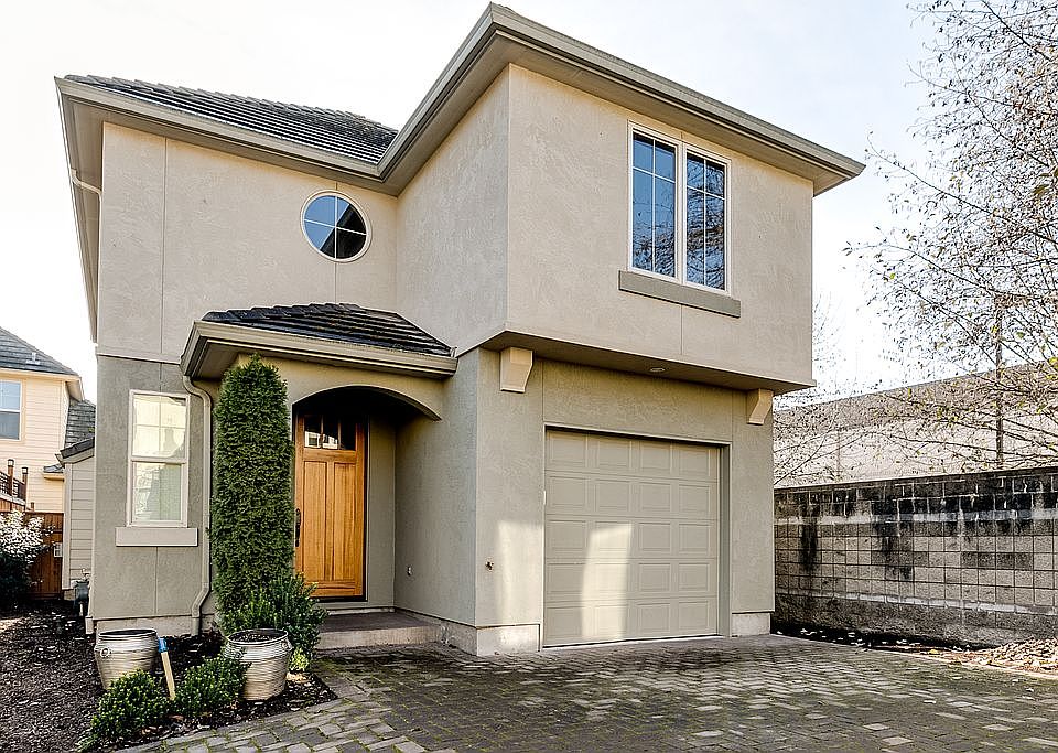 Upscale Mediterranean-style home with beautiful finishes. Main level features open-concept living with large windows. Gourmet kitchen includes custom cabinets, granite countertops, gas range, and stainless appliances. All bedrooms, including spacious master suite, are located upstairs. Fenced, easy-care yard + back patio for entertaining. Gas forced air heating + central air a/c. Home is located at the end of a shared driveway.