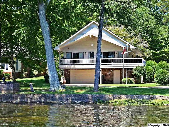 Relax on Lake Guntersville! Main Channel Waterfront Home with 2 slip boat house, electric hoists, 8 roll-up doors, stone seawall, deep water, and boat ramp. 3 Bedroom/2 bath home, 2,015+/-sqft, hardwood floors, NEW granite counter tops in kitchen, great room with vaulted ceiling, lakeside covered deck, large bonus room, basement workshop and 2 car garage. Very peaceful setting! Bring the family!