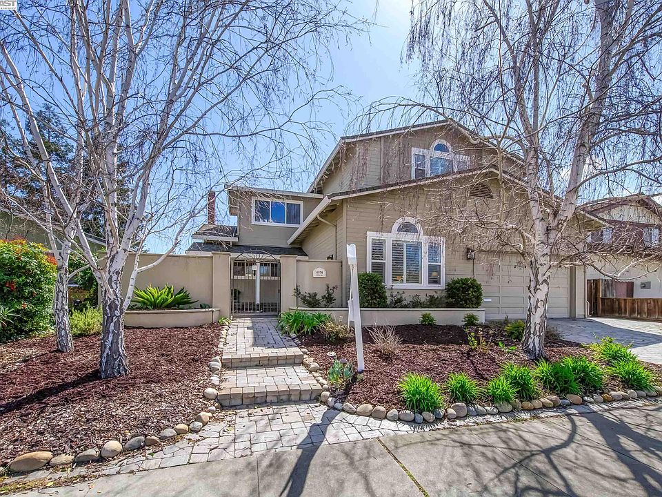 The best of Pleasanton Meadows...Features: 4 bedrooms, 4 full bathrooms. The home has a spacious attached in-law unit on the main floor or 4th bedroom or gym with full kitchen, wood flooring, full bathroom with tile shower & floors, & lots of storage (could be used as a 2nd primary bedroom or in-law unit). Plus the upstairs open loft w/shelves & storage access (could be used as additional bedrooms, office or TV room) The main Kitchen features, Corian countertops, custom wood cabinets, stainless appliances, gas stove, tile flooring, beautiful courtyard views with fountain & custom iron gate. The Primary Bedroom has, high ceilings, ceiling fan, shutters, skylight, lots of windows and beautiful hill view. Walk in closet with shelves and pull down attic access. Door leading to balcony with views of entertaining backyard. Relaxing Spa Style Primary Bathroom features, large jetted bathtub, separate spacious shower, granite countertops, lots of storage cabinets, tile floors and shower. Dual zone HVAC and Air Conditioning, OWNED solar, ceiling fans, skylights, recessed lighting, indoor laundry room, no rear neighbors and 2 car garage. Close to Downtown Pleasanton, shopping, restaurants, freeways, BART, Ace Train & playgrounds. The low HOA covers Community Pool.