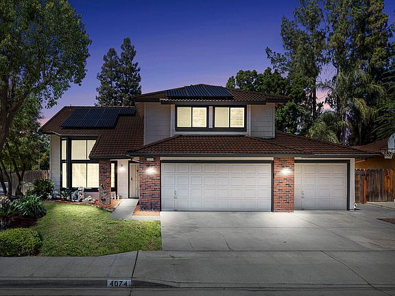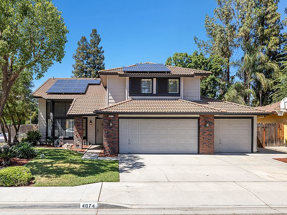 Welcome to 4074 W Menlo Ave — a bright and spacious 4-bed, 2.5-bath home on a quiet corner lot in one of Fresno's most family-friendly neighborhoods. Inside, soaring vaulted ceilings and new tile floors create a fresh, modern feel. Natural light floods the front living room, while a separate family room with a cozy gas fireplace offers the perfect spot to unwind. The kitchen opens to a dining area with views of the backyard, where a sparkling in-ground pool sets the stage for summer fun. Beyond the pool, the yard is a true blank canvas — ready for a garden, outdoor kitchen, or lounge space of your dreams. Upstairs, the spacious primary suite feels like a retreat, complete with a private balcony for morning coffee or evening sunsets. The large walk-in closet and en-suite bath with separate tub and shower add comfort and convenience. Three additional bedrooms provide room for family, guests, or work-from-home needs. The 3-car garage is packed with potential — ideal for storage, a gym, workshop, or golf simulator. Located on a peaceful street lined with mature trees and friendly neighbors, this home offers a rare blend of comfort, space, and future potential. We've loved living here — from pool days to quiet mornings on the balcony — and while relocating for work and family is calling us elsewhere, we know this home is ready for its next chapter.
