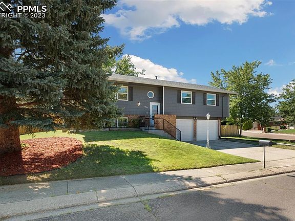 A charming bi-level home, nestled on a large corner lot in the desirable Clear View Estates community! The tasteful updates throughout the house create a contemporary and welcoming ambiance that complements its lovely surroundings. As you enter the upper level, you'll be greeted by an inviting and open common space that combines the living room, dining room, and kitchen. The wood laminate flooring provides a modern touch and flows seamlessly from the living areas through the hallway and into the primary bedroom. The spacious kitchen is a chef's dream, featuring stainless steel appliances, including a gas range, granite countertops, and a large kitchen island with counter seating. From the kitchen, you can walk out to a good-sized wood deck, freshly painted and perfect for outdoor dining and relaxation. The deck leads down to a concrete patio, offering additional space for entertaining and enjoying the outdoors. The upper level also hosts the primary bedroom with an adjoining bathroom for added convenience. Additionally, there are two more bedrooms and a full bathroom on this level. Heading to the lower level, you'll find a spacious family room with a wood-burning fireplace. This level also features a fully remodeled ¾ bath/laundry room and another bedroom, adding versatility and functionality to the home. The oversized 2-car garage offers ample space for vehicles and storage needs. Outside, the fully fenced backyard boasts raised garden beds, and an additional lower-level patio with an outdoor pergola. The freshly painted exterior enhances the home's curb appeal and contributes to its well-maintained appearance. Conveniently located, this home offers an easy commute to Ft. Carson, Peterson SFB, and Schriever AFB, making it an ideal choice for military personnel and their families. Close proximity to the Colorado Springs Airport, schools and shopping centers adds to the convenience and appeal of this neighborhood.