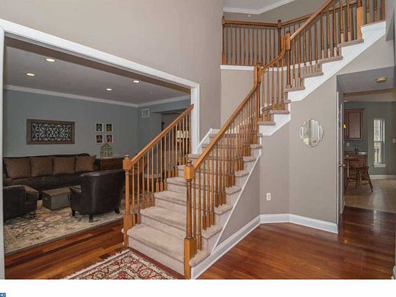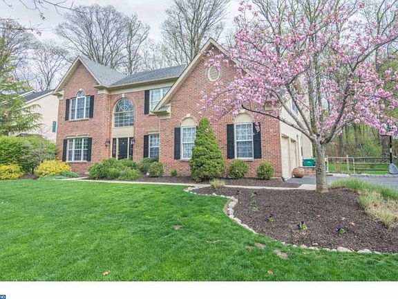 This gorgeous brick front single has been beautifully maintained and updated during ownership. Inside decor is filled with warm colors and tasteful fixtures while manicured landscape and a decorous colonial design provide great curb appeal. Enter a two story foyer featuring Brazilian cherry hardwood floors and dogleg staircase with second floor landing overlooking front entry. The main level has an open floor plan and generous room dimensions. The eat-in kitchen is complete with beautiful granite counters, undermount sink, center island w/ pendant lighting and a place for the stools, 42" cabinetry, stainless appliances, recessed lights and separate breakfast area with a slider leading to great rear deck overlooking the fenced in rear yard and wooded area beyond. The kitchen opens to a spacious family room with a marble surround wood burning fireplace, recessed lights and plenty of windows letting the sun brighten and warm the home. Off the kitchen is where you will find the formal dining room with elegant light fixture, plenty of room for the large table and hutch and the beautiful Brazilian cherry hardwood floors that flow through to the inviting front living room with recessed lighting and views into the foyer and staircase. Completing the main level is a separate laundry room with access to the garage and outside , a graceful half bath with pedestal sink and main floor study or home office. Upstairs you will find a grand master bedroom with vaulted ceilings, large walk-in closet, separate sitting room and full bath with double vanity, tile floors and surround, soaking tub and a separate stall shower. There are three sizable bedrooms, each with ample closet space. Completing the second level is a full hall bath and linen closet. The full basement is ideal for storage and offers room for expansion to your living area, if desired. Enjoy the best of both worlds - spacious neighborhood living with the option of hopping on the bicycle path straight to the heart of Doylestown's shops, restaurants, and museums. One year Home Warranty included!
