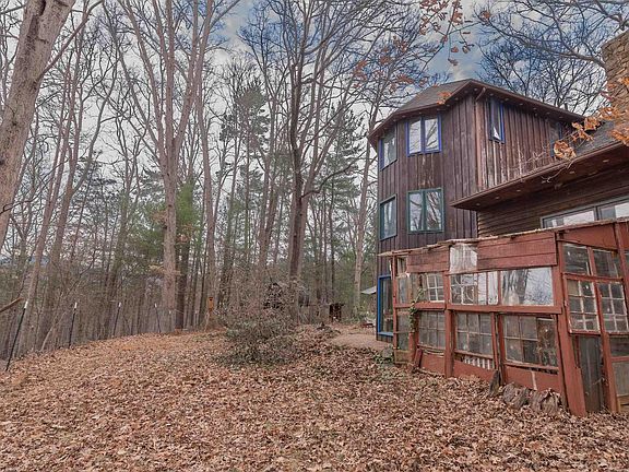 This farmette is surrounded by 70 plus acres of parklike land under conservation easement along the scenic Moormans river. The home, built in 1979 by Shelter Associates, is split level featuring a three story octagonal tower and stone fireplace and many windows allowing for natural lighting. The kitchen, at the rear of the home, is on the lower level with a two story ceiling accompanied by the bottom room of the tower serving as a breakfast/dining area. The dwelling is supported by a small barn, three level pastures and run-in sheds.
