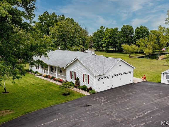 LISTING IS BEING WITHDRAWN UNTIL WATER LINE IS FINISHED. This is a must see!!! This beautifully updated, well maintained home with 3 beds, (3) full (2) 1/2 baths is on 10 flat acres. Primary bedroom has a bay window, separate shower/jacuzzi tub. Family room has a wood burning fireplace. Relax 0on the covered porch that overlooks a water feature and the lake. Kitchen has granite countertops, propane cooktop, double ovens. double sink, microwave and refrigerator. Lower level has another open bedroom with a full bath. 40x60 open span outbuilding with 14x60 lean two. Oversized garage with Epoxy floor. Propane tank owned. Perfect for a gentlemen farm or horse ranch. With minutes to Hwy 40/61. Convenient for shopping in Winghaven and Hwy N/40. New Melle, Augusta and Defiance are also minutes away.