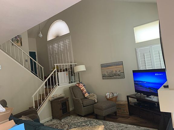 Open and bright with 2 master suites, 2 bathrooms upstairs with double sinks, bright vanity, walk-in master closet, triple-wide second closet, 1/2 bathroom downstairs. Large great room, high ceilings, remote controlled gas fireplace, gas range, triple wide vinyl low E slider with view of huge backyard, plantation shutters and cellular shades. Central A/C and heating. Gorgeous kitchen with black granite countertops, deep stainless sink, matching stainless appliances, bar counter seating, dining area with ceiling fan. Master bedroom is very large with multiple windows, plantation shutters and large window seat, large master bathroom with walk-in closet. Second master bedroom has vaulted ceilings, multiple windows with plantation shutters and is very roomy, full guest bathroom with triple-wide closet, bright vanity, double sinks. Laminate hardwood floors throughout the house. Brick steps and attractive brick patio leading to large landscaped park-like backyard with large grass area and mature trees. Laundry facilities are conveniently located upstairs near both bedrooms. Park in the two car garage with direct kitchen entry. 2-car driveway. Private community of Millcreek in Donner Springs. End of cul-de-sac easy access. Close mailbox. Mountain view from master bedroom. Owner pays monthly HOA. Tenant pays all other utilities: electricity, gas, sewer, water. No pets. No smoking or vaping. No subletting. No long-term guests. 1-year minimum lease term. $50 per person over 18 background/credit check required. Contact owner to schedule viewing appointment.