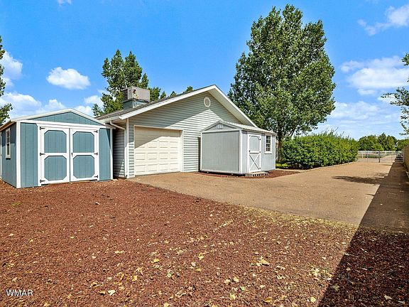 Charming, one-of-a-kind 3 bed/2 bath home with a 2-car attached garage (26'x24') on 1.25 acres. Includes a loft for possible 4th bedroom, and 32'x32' detached workshop with 3rd garage space - ideal for projects or potential guest quarters. Features 2 Weather King sheds for your toys and tools, an RV hookup, mature trees surrounding the landscaped yard with sprinkler system, raised flower beds with individual watering systems, and a large concrete patio under shade trees for entertaining. NEW ROOF on the main residence and new reverse osmosis system installed in 2023. NO HOA! A unique home full of thoughtful touches and amenities, waiting for you to make it your own!