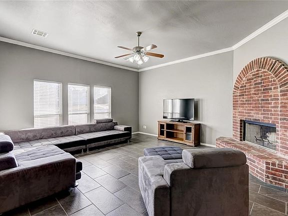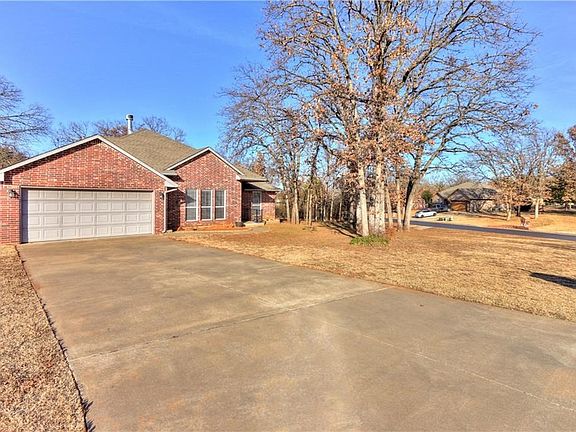 You found it!! A beautiful home with a huge, wooded lot in Edmond. The covered front porch welcomes you home. Inside you will find the great room with a gorgeous fireplace and great updated 18" tile floors that run throughout the home. The great room opens to the well appointed kitchen with breakfast bar and stainless steel appliances. Imagine dinner parties in your large dining area. The split floor plan allows privacy for the master suite on the east wing. The master bath offers a double vanity, large walk in shower, jetted tub, and a huge walk in closet. On the west wing, you will find 2 bedrooms and full bath. Step outside and take in your huge private back yard. This is the spot, sit- relax- you are home.