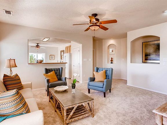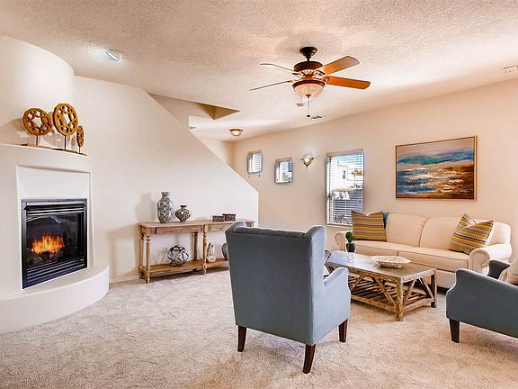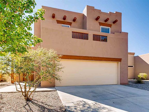 Home is Immaculate and "move in ready" with new carpet and paint. Kiva fireplace and nichos add the perfect Santa Fe touch to this beautiful 2 story open concept living floor plan. Owners Suite conveniently located on first floor with walk in-closet, double sinks, garden tub and shower. Outdoor living areas landscaped with complete time drip irrigation system. Situated on a nice corner lot. Refrigerated Air. Centrally located to Shopping, Genovava Community Center and Santa Fe Community College. Easy access to I-25.