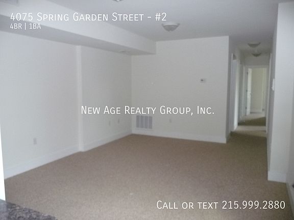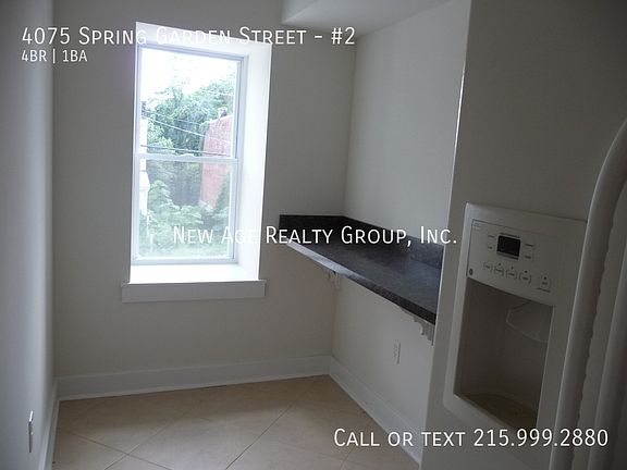 This is a four bedrooms, one bathroom apartment with wall to wall carpet and central air conditioning. The modern kitchen is a fully tiled, open space that can accommodate a table and chairs. There are new appliances, ample cabinets, and plenty of counter space. The living room has many windows that allow nice natural light to enter. The bedrooms are down the hallway from the living room and are equal in size and all have large closets. This apartment also features its own washer and dryer in the unit. This beautiful apartment is a few blocks away from the Drexel Vidas Athletic Complex, as well as Drexel's Campus and UPenn. Tenant pays for gas, electric an $20 per bedroom for water. Tenants must obtain renters insurance. Pet Policy: Cats OK with $300 non-refundable pet fee. All New Age tenants will be automatically enrolled in a Resident Benefits Package (RBP) for $25 per month, which includes $5k in property damage reimbursement, credit building through timely rent payments, a resident rewards program, and so much more! These benefits are designed to improve your living experience and put money back into your pockets. Please Note: To process the applications a holding fee equal to one month's rent must be paid after submitting the application(s). Upon approval the unit will be removed from the market & the holding fee becomes the security deposit for the unit moving forward. If your application is declined, we will refund the holding fee within 2 business days. We collect first month's rent, last month's rent, and a security deposit for all our properties. These balances MUST be paid in certified funds. Central A/C Laundry In Unit (Private)