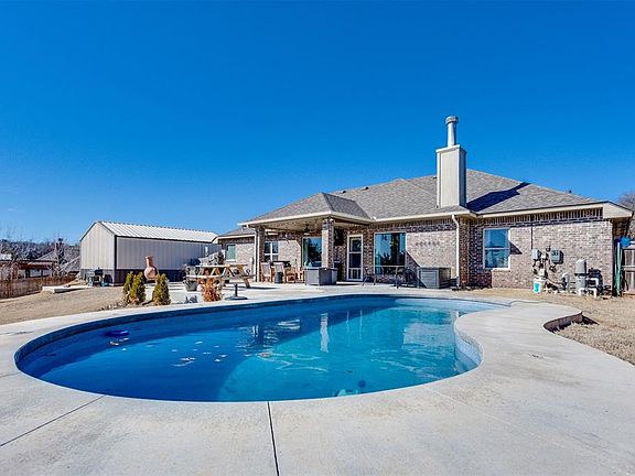 Step inside this beautifully updated 4-bedroom, 2-bathroom home in the highly sought-after Woodland Farms community! The home has truly been well taken care of and maintained throughout ownership. Enjoy a plethora of natural light, an all-electric setup, and the convenience of well water and septic. Located just minutes from the highway, this home offers the perfect blend of modern comfort and easy accessibility. It also offers numerous upgrades, including a new HVAC compressor (2022), a sparkling pool (2021) with a 20-year shell warranty, fresh interior paint, and durable wood laminate flooring with a 30-year warranty. Additional features include a storm shelter (2021) for peace of mind and a brand-new roof (March 2025), and a 26x25 patio. Lastly, 24x30 shop with insulated roof/walls, garage doors w/opener & electricity. *Assumable VA Loan*