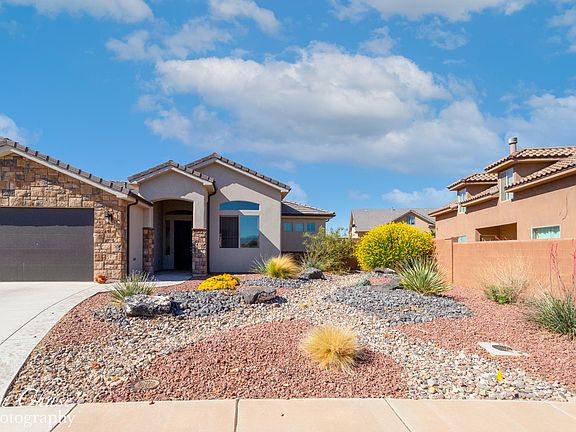 This gorgeous 3 bed/2 bath + office home is located on a quiet cul-de-sac close to Sand Hollow State Park and Zion National Park. The main level features an open floor plan, granite countertops in the kitchen and both bathrooms. The master bedroom closet has custom built in storage. Beautiful yard complete with covered patio, fire pit, stained block wall fence and pristine landscaping. The neutral palette throughout this home will make it easy to decorate and make yours. Do not miss out on this fabulous opportunity!