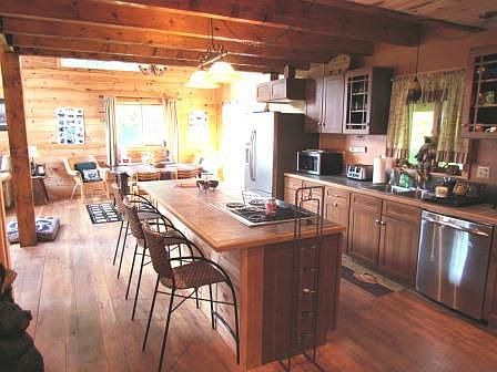 This fantastic property is within walking distance of Snow Ridge Ski Center and only three miles from Tuin Highlands Golf Course. Close to an array of outdoor fun, like kayaking, hunting, fishing, atv-ing, The kitchen features hickory cabinets and slate countertops, center aisle, stainless steel appliances and off a massive cathedral ceiling. There are hand hewn beams, second level master bedroom with master bath and sitting room for office or den just off. There is a 10x40 covered front porch and 10x40 rear covered area.