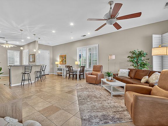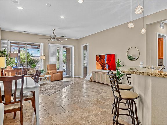 Welcome to your dream seasonal retreat at 40751 Calle Los Osos, nestled in the prestigious Sun City Shadow Hills community. This beautifully furnished 2-bedroom, 2-bathroom home offers the perfect blend of comfort and resort-style living. Step inside to an inviting open-concept layout, featuring a spacious living area filled with natural light, a modern kitchen with sleek appliances, and a cozy dining space ideal for entertaining or relaxing after a day in the sun.