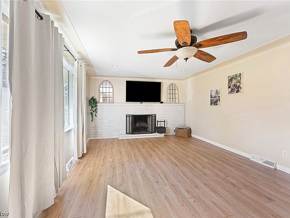 This Spacious all Brick Ranch has many features and updates. Over an acre of property to enjoy. Walk into this Large Living Room that has all New Luxury Vinyl water & scratch proof flooring and a Brick Fireplace with a stone raised Hearth that stretches across the far wall. The new Luxury vinyl flooring is throughout the home. The Spacious open Dining Room is connected and open to the Kitchen. Newer appliances, Quartz Counter tops and double door pantry an abundance of cabinets with a peninsula for some bar stools. There is a sliding door that is new (2022) which leads from the Dining Room to the exterior. The large concrete patio (2022) has plenty of room for play/entertainment. Newer light fixtures in the home. All new doors throughout. Newer Roof within the past 5 years. Hot Water tank new in 2015, newer Furnace & AC. Bedrooms are spacious and plenty of closets. New furnace vents in each room. Full Basement/ Finished off with and office plus another Full Bathroom. Baseme