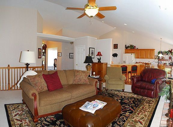 Nestled in a cul-de-sac in the Knolls at Woodfield, you'll find this great 4 BR, 3 BT home on a finished walkout bsmt (9' pour) on 1.3 acres! Bright and open floorplan; foyer entry opens to formal LIV & DIN Rms w/chair rail. Large Great RM offers arched windows, vaulted ceiling & fireplace, open to gourmet KIT featuring brkfst bar w/overhang for stools, planning desk & pantry. Bayed breakfast nook area leads to nice deck! Luxury vaulted master suite offers walk-in closet & private bath boasting dbl vanity, soaking tub & separate shower. Convenient main floor laundry. Lower level features FAM RM, REC area, 4th BR, 3/4 bath & more - perfect for entertaining! Walkout leads to nice patio overlooking huge yard. Plenty of unfinished storage space, too! Side-entry 2-car garage. AHS Home Warranty provided by seller. What a great place...a MUST SEE! Call for a private showing today!