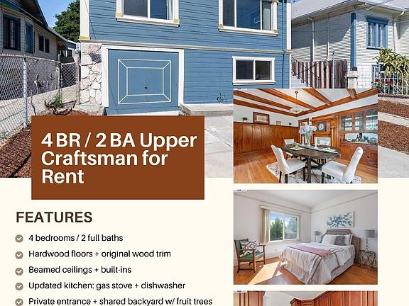 Welcome to this charming 4-bedroom, 2-bath upper Craftsman located in Oakland's desirable Allendale neighborhood. This spacious home blends original architectural character with thoughtful updates, offering warm natural light, hardwood floors, and beautiful period details throughout. With generous room sizes, a recently updated kitchen, and peaceful outdoor space, this home is perfect for anyone seeking comfort, convenience, and classic Oakland charm.