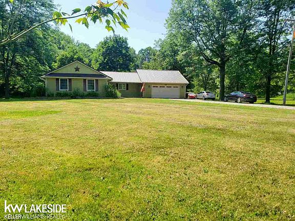 Country life is calling your name! Just what you have been waiting for this 3 bdrm 2 full bath ranch on OVER 5 acres with full basement and beautiful metal roof. Sits 600 ft off the rd. Wood burning stove with stone hearth is in the living are that offer a spacious nook perfect for your home office! Both baths are new, new roof in 2019, new AC, freshly painted the basement is clean and offers built in storage room. Appliances not included - microwave, fridge, stove (unless negotiated otherwise). Included in sale - dishwasher, washer and dryer. Large covered front porch invite you to sit and smell the roses!! Over sized attached garage is 24 x 28 with opener. Secluded dead end road has low traffic. Quick occupancy!!