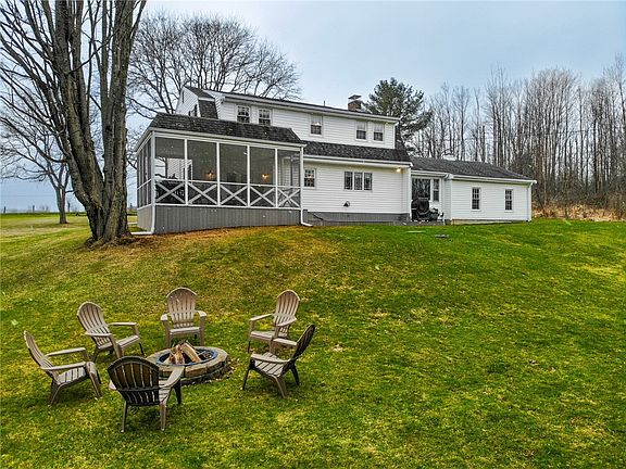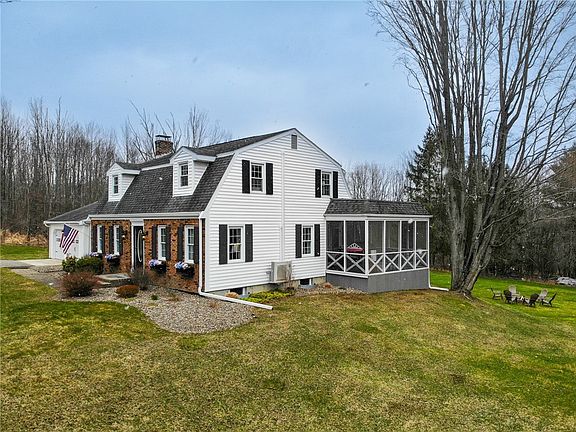 Move right in to your own slice of paradise! Picturesquely situated on over 4 acres of tranquility and relaxation, this tidy gem has everything you're looking for. All the modern amenities; a sun-filled quartz kitchen with island, Bosch appliances and beverage fridge for easy entertaining, while Central A/C and a combination of heat pump and hot water heating make for comfort in every season. Lovely built-ins throughout, a brick kitchen focal point and fireplace, hardwoods, and crown moldings all add to the quality and charm. 4 bedrooms and 2 full baths up include a warm and inviting owner's suite, hardwoods throughout the second floor. A huge screened in porch and additional deck overlook the spacious lawn, with the property on the Finger Lakes Trail system, and West Hill State forest practically right in your backyard! A 2 car garage and full basement ensure space for everything. Many improvements include professional landscaping, new septic system, Leaf Filter gutter system, extending Spectrum high speed internet to the home, appliances, lighting, paint and more. Ask your agent for the list. Don't miss this gem, just minutes from town!
