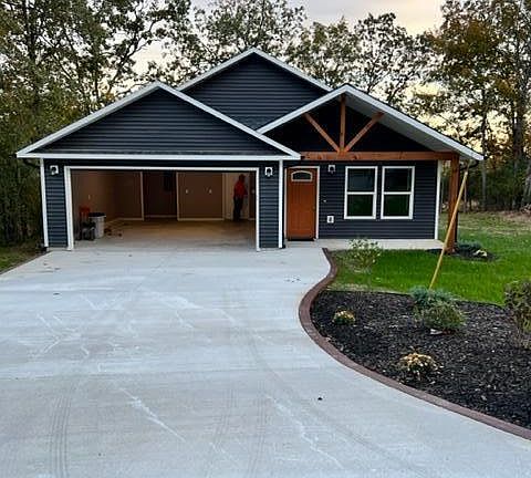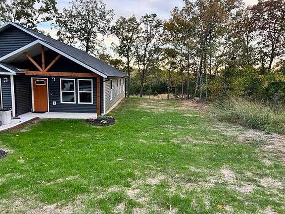 Back on the market at no fault of the seller! Construction completion date November 5,2022. Brand new home in Branson school district on large double lot (80' X 120') with large, level side yard. Features include: concrete countertops, black gutters, with gutter guards, an insulated 2 car garage with garage door opener and utility closet, ceiling fans and generous lighting throughout, a large laundry room with mop sink and lots of storage or pantry use, this home has a logical floor plan with a generous amount of windows supporting a light and bright home. A beautiful large concrete driveway and patio, zero entry doorways and wide hallway, engineered truss roof, all in a single level. This home backs directly onto Lewis Family conservation area that will never be built on, and you can hunt in your own back yard (according to MO Conservation rules) just close enough to Branson, Forsyth and Springfield with public dock just five minutes away on Lake Taneycomo. It feels like country when you sit on your quiet, concrete patio looking out over nature, with just a short walk across conservation land to beautiful Bull Creek. Seeing is believing so don't miss viewing this beauty. All measurements are approximate, buyers and buyers agents are to do their own due diligence.