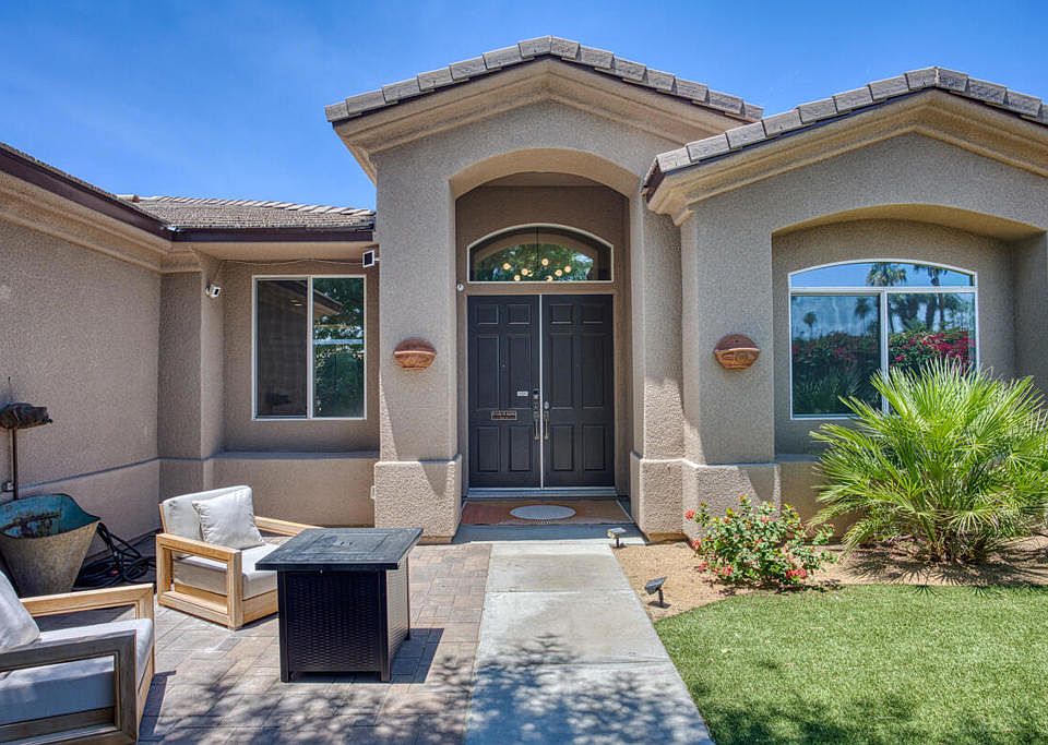 Located off Monterey and Hovley in the heart of Palm Desert, this meticulously cared for home has a true split floor plan with primary suite and up-front office on one side separated by an expansive open living area and the additional two guest rooms on the other side. Gorgeous western mountain views from the backyard as you're enjoying your sparkling pool and spa or relax in the private, gated, front courtyard lined with lush greenery and privacy hedges. Pride of ownership shines through as well as additional improvements and features including new roof, 2020; both AC units replaced, 2022; and pool equipment updated to saline system in 2020! Additionally, desert wise landscape, side-yard dog run and newly painted exterior and interior with beautiful brand-new neutral carpeting throughout and new and updated flooring in the primary bedroom and bathroom! Are you looking for a wonderful home with ample square footage in a wonderful location -- near Bristol Farms, El Paseo - easy to I-10 and a few minutes to Rancho Mirage, Palm Desert, and Eisenhower Medical -- a true value and reasonably priced, with all of the heavy lifting already completed for you? You have found it! Perfect for year-round, secondary home or vacation retreat!