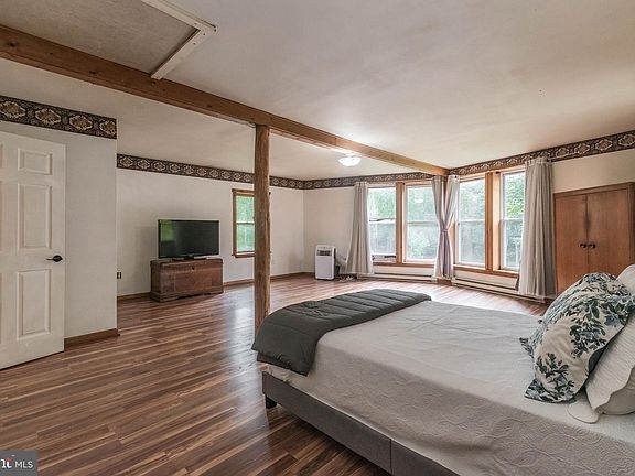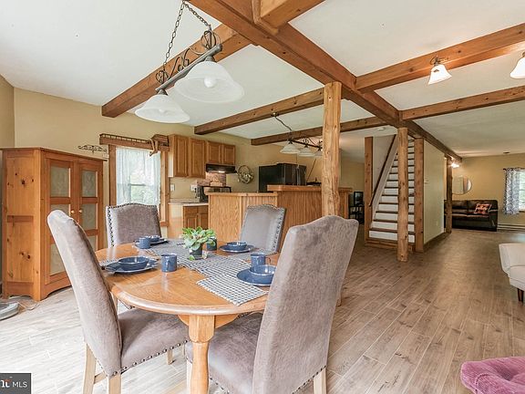 Absolutely charming retreat just on the Morgan County side of Hedgesville that offers a contemporary lifestyle that spreads into the private outdoor space. This 3 bedroom, 1.5 bathroom home sets on a serene 11+ acres with several small ponds to enjoy. Inside enjoy updated plank flooring that travels throughout both of the finished living levels and natural beamed ceilings on the main level. The raised kitchen has commanding views of the property through the large windows in the adjoining living and dining rooms, and it features gas cooking with a full stainless steel appliance set. Beautifully updated bathrooms are found on both floors, with the upstairs bedrooms sharing the full. The primary bedroom is expansive with panoramic views through the large windows of the upper level. It is an open space with a large walk-in closet and attached laundry room. The second and third bedrooms have nice built in closets to maximize space. Plenty of additional space for toys in the unfinished basement garage and the large detached 20x40 garage with separate electric panel and great lighting. - ideal space for a workshop of home business - and there's another shed for yard tools. Enjoy peaceful views from front and back in comfort on two roofed decks ready for outdoor furniture, and rainy nights through the melodic metal roofing. This property really has it all with a location that is conveniently off of Route 9, yet private enough to fully enjoy. Come see if it's right for you!