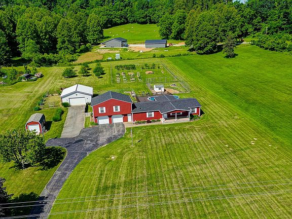 A Homesteaders dream on 2.75 acres! New roof, new siding, new water heater and new carpet all in 2022. 4-car detached garage can be used as a barn. Numerous fruit trees and plants including pear, cherry, apple, blackberry, blueberry, strawberry, elderberry and grapes. Above ground pool to enjoy the country scene on hot summer days. Additional storage in the Amish built shed as well as the 2-car attached garage. 1st floor primary suite with a private en suite that includes a garden soaking tub, shower and spacious vanity. 4th bedroom is a bonus room upstairs off of the 2nd family room/rec room. Easy access to route 33 for commuting. This home has everything you need and more!