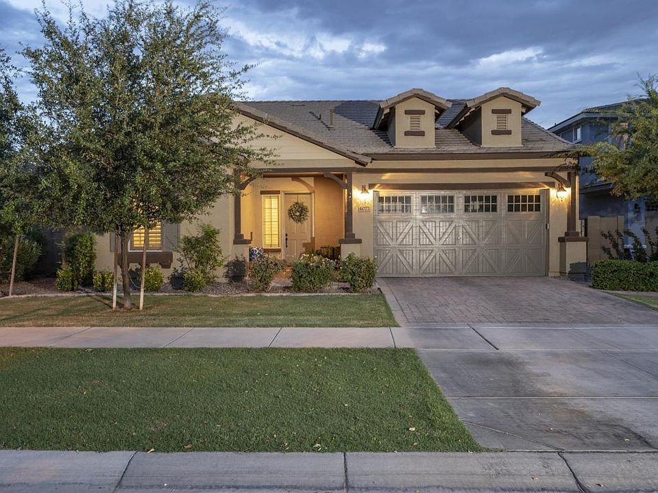 BEAUTIFUL & IMMACULATELY MAINTAINED 4 bed (plus den)/3 bath single level home w/ delightful curb appeal in the popular Elliot Groves in Morrison Ranch of Gilbert! Delightful, covered front patio welcomes you into this wonderful home where pride of ownership shines. Upgrades throughout including plantation shutters, wood blinds, recessed can lighting & top of the line cabinetry. Huge, bright great room open to dining room (w/ Restoration Hardware light) & FANTASTIC KITCHEN which offers crisp, white cabinetry, SS appliances, granite counters, custom tile backsplash & oversized island w/ sink, bar-top seating & Pottery Barn pendant lights. CUSTOM BENCH & CUBBY feature is perfect for keeping the kids organized & getting them out the door quickly.
