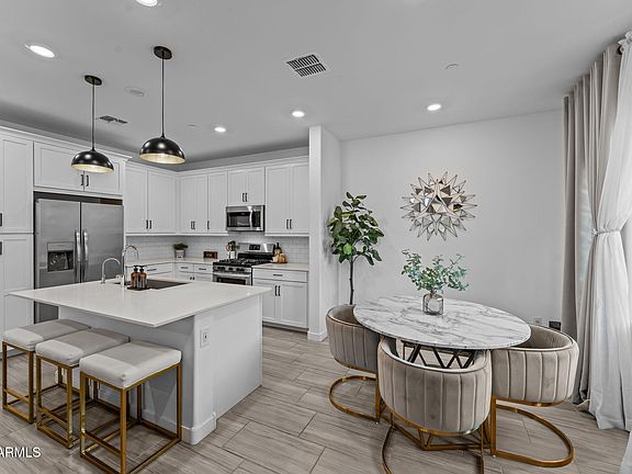 Welcome to this stunning 4-bedroom, 3-bath townhome in the highly desirable, resort-style gated community of Echelon at Ocotillo. Nestled in a premier location, this exceptional residence offers the perfect blend of luxury, comfort, and convenience. Step inside to discover an open and airy floor plan with 9' ceilings and abundant natural light. The gourmet kitchen is a chef's dream, featuring quartz countertops, soft-close cabinetry, stainless steel appliances, a gas stove, and a spacious eat-in area. The inviting living space is enhanced by recessed lighting, and elegant arched doorways that complement the neighborhood's Spanish Mission aesthetic. A highly sought-after downstairs
