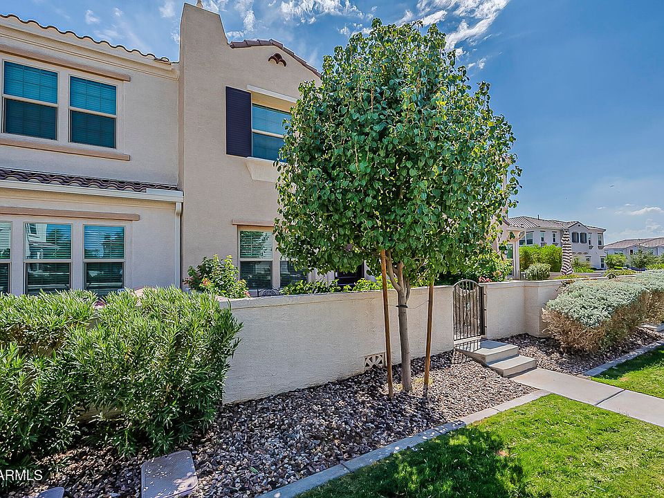Nestled in the sought-after Ocotillo Community, this nearly new townhouse is located on a premium lot within the community and offers a spacious open floor plan, private courtyard, and a rare driveway with a two-car garage. Highlights include custom designer touches, including custom paint, stunning black banisters and interior front door, upgraded tile, a chef's kitchen with quartz countertops and Energy Star stainless steel appliances, and a roomy loft, perfect for office, gym, or secondary living space.  The serene primary suite provides a perfect retreat for the end of a long day.