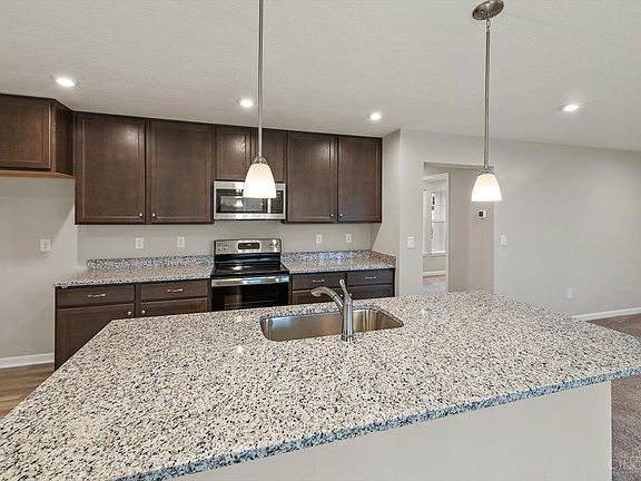 • Features: Kitchen Island, Marble/Granite/Slate, Pantry, Vinyl Floor, Wood Cabinets