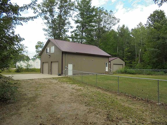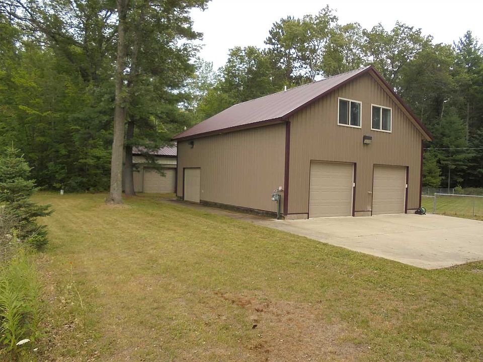 This is the perfect "Man Cave" ,with plenty of room for ALL of your toys. THIS IS A MUST SEE PROPERTY!! It features a upper apartment above 30 x 40 garage. Apartment features a 1 bedroom, 1 bath, open floor plan with pine wood flooring. Radiant NATURAL GAS hot water heat that heats both the garage floor and upper apartment floor. Apartment has cement counter tops, a unique lighting system though-out, custom metal mini blinds and kitchen cabinetry. Property has an additional garage 24 x 24, fenced in yard with sprinkler system and a circle drive. This is a fantastic up north get away that sits on 2.5 wooded acres. Make this the "Hub" of all your outdoor activities.