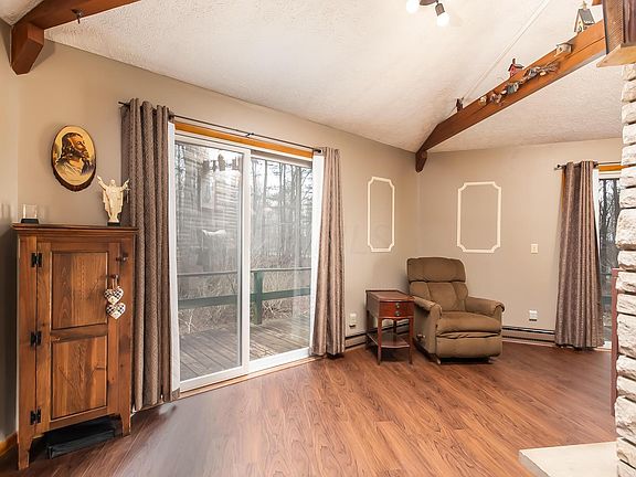 This rustic wooded one story property situated on just over 3 acres is equipped with 2 bedrooms, 1 bath, and a full unfinished walkout basement with a framed in bedroom and roughed in bath. The home has all new flooring, new counters, new paint, and a new water heater. The possibilities are endless! Showings start 3/7 Property to be sold AS-IS