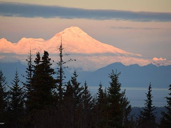 Almost 3 acres on top of Diamond Ridge. Plenty of parking space. Beautiful views of the mountains and glaciers to the northeast and volcanoes (Illiamna and Redoubt) to the west. Very secluded yet only 12 minute drive to downtown Homer. Ski and hiking trails adjacent, as well as unlimited snowmachining and ATV possibilities right out the back door. 24 by 28 detached garage/shop with single car leanto on one side. Very quiet yet close to the action and amenities. 3 bedrooms, all with walk-in closets plus an office.