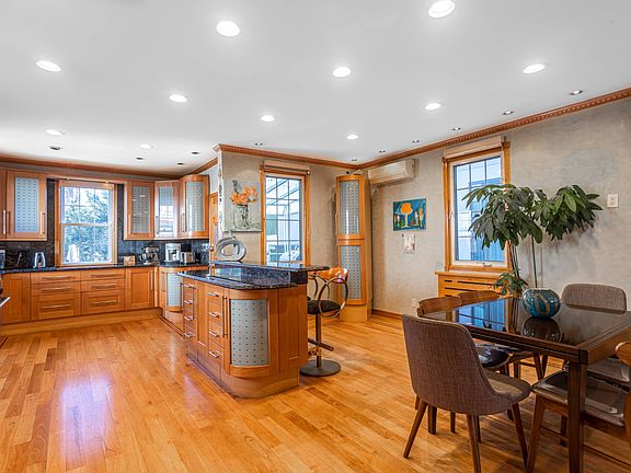 Luxury living surrounded by water views in this three-bedroom, three-and-a-half-bathroom detached home, less than (450) feet from the beautiful Sheepshead Canal on one of Manhattan Beach's loveliest streets. Enter on the main living floor, where open concept and natural light are flanked by a wall of windows. Split between the generous lounge and kitchen spaces, the living floor is an entertainer's dream, with multiple seating and eating areas. The light-filled, custom kitchen is a testament to its beautiful and functional design with long stretches of granite countertops, an under-mount stainless sink, tons of custom solid and glass front cabinetry, a Sub-Zero refrigerator, Miele dishwasher, and a Thermador Professional gas range with a hood that vents out by Broan. The granite countertop on the central island is as striking as it is functional and comfortably seats four. From the kitchen, enter a private backyard oasis designed for all-season use. A powder room and an entry foyer complete this level. The upper level features the primary bedroom with partial water views, a his-and-hers custom closet, and an ensuite bathroom. There is an additional full bathroom in the hallway, plus two large bedrooms, and each has space for a Queen size bed. There is also an abundance of closet space throughout this level. The basement enjoys a high ceiling and an additional over 700 SF of potential living space, including a guest bedroom, office, full bath, and private entrance, allowing maximum flexibility. The basement could be easily used for an au pair suite, a family room, or a recreation room. It also has excellent storage and a separate laundry room. The residence has heated floors throughout the house, including the basement, and a split-level HVAC system for a comfortable winter/summer living experience. High-efficient Navien tankless water heater with extra storage provides instant hot water all year round. The exceptional outdoor space provides true indoor-outdoor living with a tranquil backyard and welcoming front patio, seamlessly composed with pavers. The backyard is perfect for a fire pit, a grill, and comfortable outdoor dining, offering peace and tranquility away from the hustle and bustle of city life. The detached one-car garage and driveway provide the luxury of off-street parking with room for several cars.