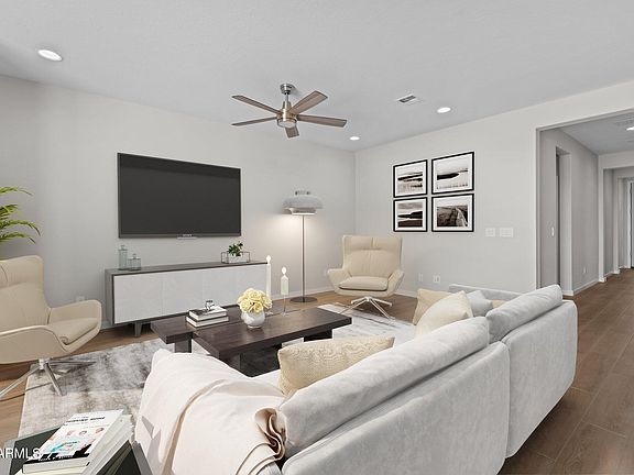 Step into the ease and elegance of Wickenburg Ranch with this delightful 3-bedroom + 2.5-bathroom home, where every detail is tailored for comfort and style. Perfect for those who appreciate fine living and warm community vibes, this home offers a seamless blend of indoor and outdoor living spaces that are as functional as they are beautiful. East facing backyard with stunning mountain views. The open living area, illuminated by natural light, provides a welcoming space for relaxation and entertainment. The kitchen is a dream, with sleek appliances and ample counter space, ideal for whipping up gourmet meals or enjoying quiet mornings at the breakfast bar. The bedrooms offer peaceful retreats, ensuring a tranquil end to each day. Don't miss the chance to make this home your own
