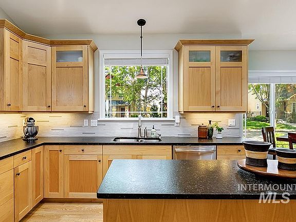 An elegant single-level residence set on a wide corner lot in the heart of the Mill District, at Harris Ranch! This charming pocket enjoys unbeatable proximity to neighborhood dining, the Greenbelt, and Shakespeare Festival! Ideal for downsizing in square footage without compromising quality, this beautifully updated residence lives large with a fabulous open great room, remarkable updated kitchen, and enchanting garden setting. A series of dining and living quarters circle the gourmet chef's kitchen, offering an ideal layout for day-to-day living and entertaining. The kitchen underwent an stunning remodel, anchored by a spacious prep island, with beautiful wood cabinetry, leathered granite countertops, mosaic tiled backsplash, and stainless steel appliances. Hardwood floors, tall vaulted ceilings, and large windows craft an elegant backdrop that highlights the quality of construction throughout.