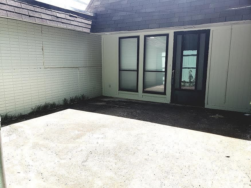 Rare find one story 2 bed 1 bath 2 car garage end unit owner occupied for many years. New roof & dishwasher just installed. Really nice wood burning fireplace & great open modern floorplan. Home has a large fenced in private patio & a beautifully remodeled bath. Inside utility closet. All appliances remain with home, sold in "AS IS" condition