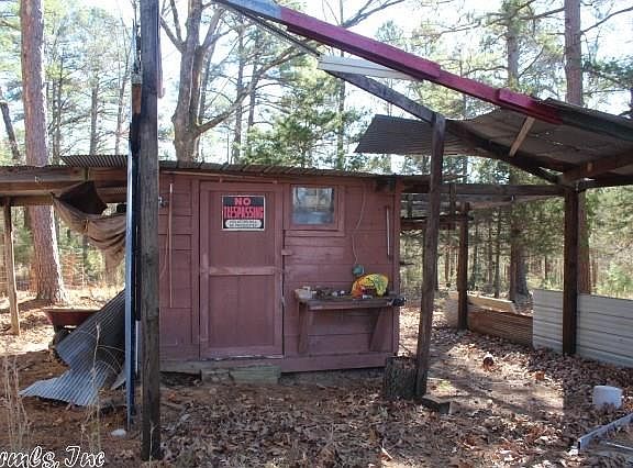 No. 01713 - The cabin is 696 square feet with 2 bedrooms and 1 bath and is handicap accessible. The home is ducted for central heat and air but isn't currently in working order. There is a propane space heater and a window unit air conditioner. There are 3 storage buildings on the property, an enclosed room off the porch, and a camper trailer that is remaining with the property. It has a circle drive and access from two different county roads. $59,000