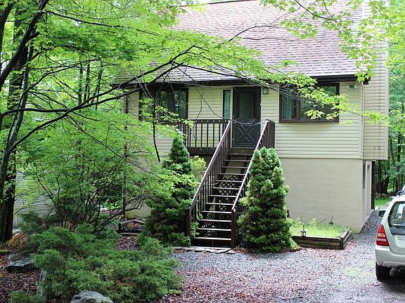 Great country cape, featuring 3 bedrooms & 2 full baths. Off of the dining area is a nice sized Florida Room which overlooks a well manicures rear yard. Nicely landscaped, this home also has a deep 1 car garage, carport and finished basement area with 2 sections. The home is located in The Hideout, the Northern Poconos premiere gated community. Community amenities include a private 9 hole golf course, 3 lakes, motorboating, skiing, beaches and pools, and much more! $119900