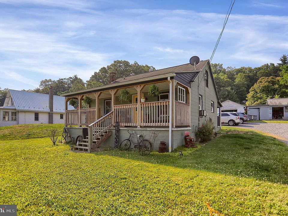 Quaint and cozy 2 bedroom, 1 bath ranch is ready for you to call home. Plenty of room for the kids to play on over a half-acre lot. Large front and back covered porches. Detached garage provides extra storage. Large family room with laminate flooring is currently divided into a living area and additional bedroom space. Replacement windows throughout home. Remodeled full bath with new vanity, toilet, flooring, and paint as well as a remodeled main level laundry with toilet. Schedule your showing today!