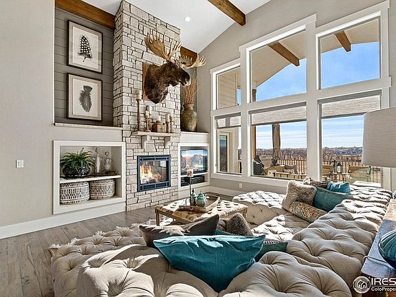 No Metro Tax. Spectacular view corridor - Full view of Longs Peak/Meeker and Big Thompson River with private open space in your backyard! Arapahoe plan offers a spacious master suite, hand troweled walls, solid Alder doors and trim. Vaulted ceiling with exposed beams. Gourmet kitchen included double ovens, gas range, slab granite counter tops with travertine back splash. Quality built by Oak Valley Homes.