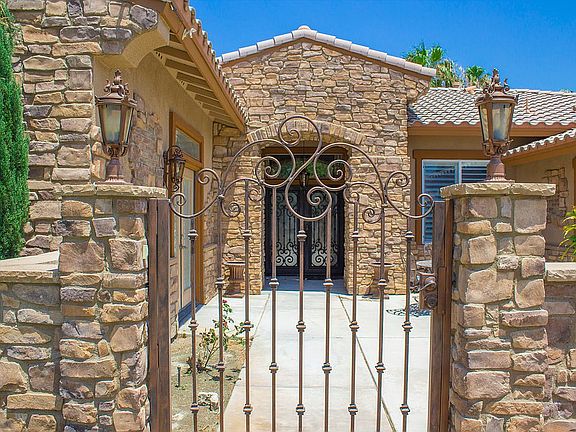 Showplace of Whitehawk!!! Home in a highly desired Palm Desert community off Country Club Drive! Gorgeous Tuscany-style curb appeal as you walk up the tiered walkway into the front courtyard and are greeted by double Hubbard Iron doors. Split level floor plan allows for privacy on the north side of the house with a master bedroom ensuite and a casita with it`s own double door entry. On the south side of the home, you`ll find three bedrooms, an additional full bathroom with double sinks, and a powder room. Kitchen with custom copper hammered hood vent and unique granite counters. Plantation shutters throughout all interior of home. Custom Pebble Tec pool with beautiful stack stone design spa and double waterfalls. Upgraded patio flooring with Yukon Gold flagstone. Custom Acrylic stucco on exterior of home to guard against cracking in the hot desert sun. Exceptional location: minutes to town, great schools, shopping, Indian wells Tennis Garden, golfing, and Acrisure Arena. Whitehawk Community includes access to Woodhaven Country Club golf course. Low HOA fee of $ 140 includes cable and internet. This home can be seen by appointment ONLY . Must submit proof of pre-qualification or bank statement in order to schedule a tour of home.