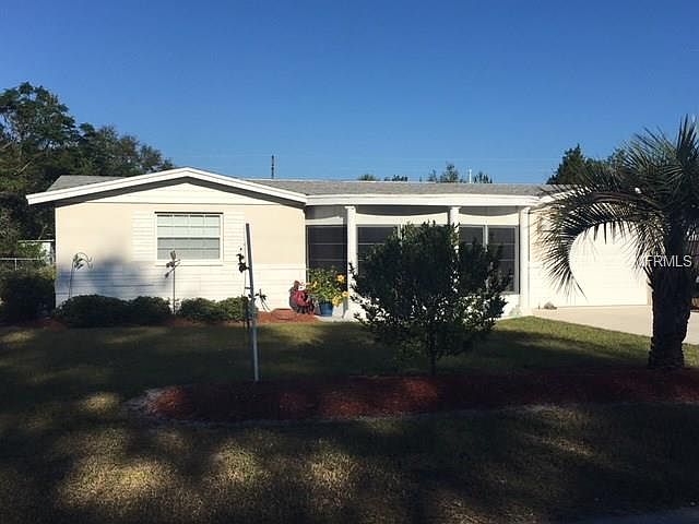 WELCOME HOME! This 2/2/1 pool home is ready to move in!!! Within the last 2-3 years the home has been slightly renovated and tile floors have been added throughout the house, kitchen cabinets have been added, and the garage door was recently installed. The drain field has been replaced (July 2018), the complete exterior of the house has been painted and landscaped (March 2019), and a brand new HVAC system has been installed (December 2019). The gorgeous lanai and caged pool area has a breathtaking view in a very relaxing environment. A sidewalk conveniently connects from the lanai area to the second bathroom/laundry room during those fun sunny days of endless pool fun and entertainment with family and friends. The yard is fenced in on one side to contain our precious fur babies.